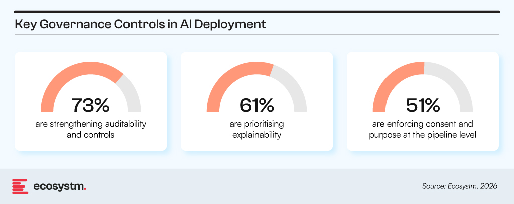 What is changing is where these decisions sit. Choices around data use, model behaviour, access rules, and retention now shape system design from the outset. Governance is reflected in architecture decisions such as how data is partitioned, how models are trained, and what gets logged or traced.