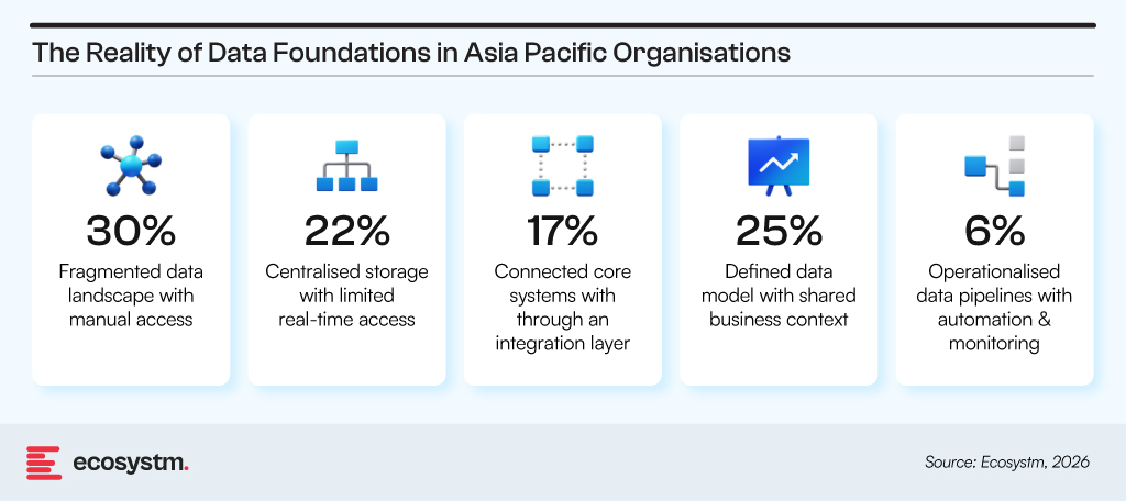 The constraint lies in how data is structured, connected, and accessed across the enterprise. In many organisations, data is distributed across legacy systems, cloud platforms, and business applications designed independently. A significant share of effort goes into locating, reconciling, and validating data before it can be used for AI workloads.